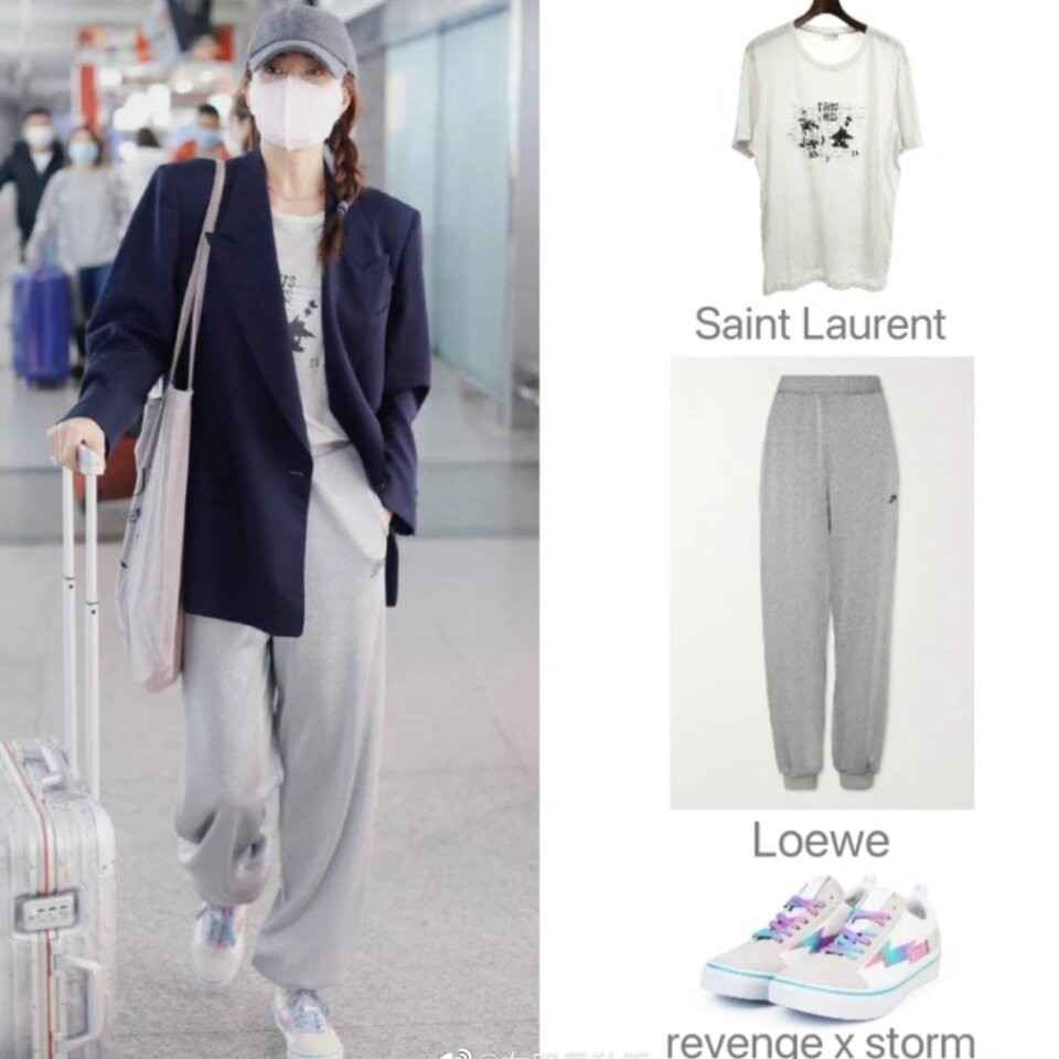 雾霾蓝西装对黄皮特别友好,微微落肩的设计削弱了商务感。殷桃这件西装面料抗皱性很好,坐一天办公室也不会皱巴巴。内搭白色T恤营造清爽感,扣子解开两粒形成V领更显瘦。