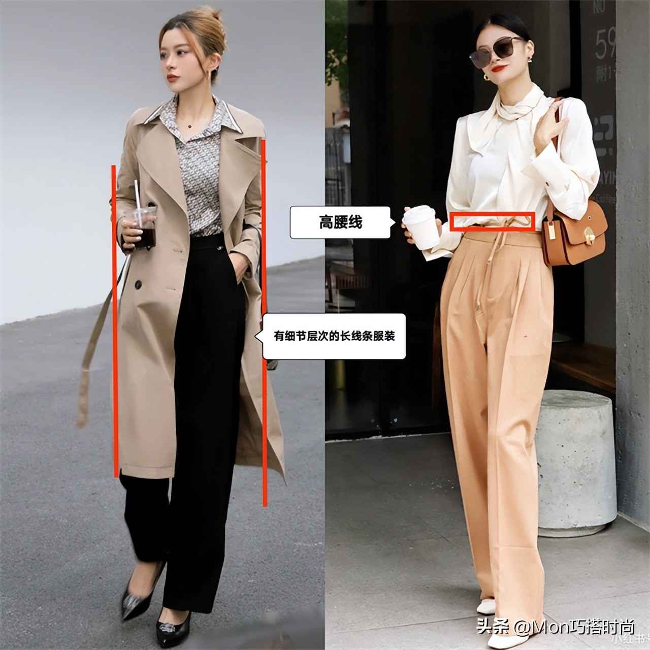 (技巧2)选择高腰长款服装,拉长身形线条