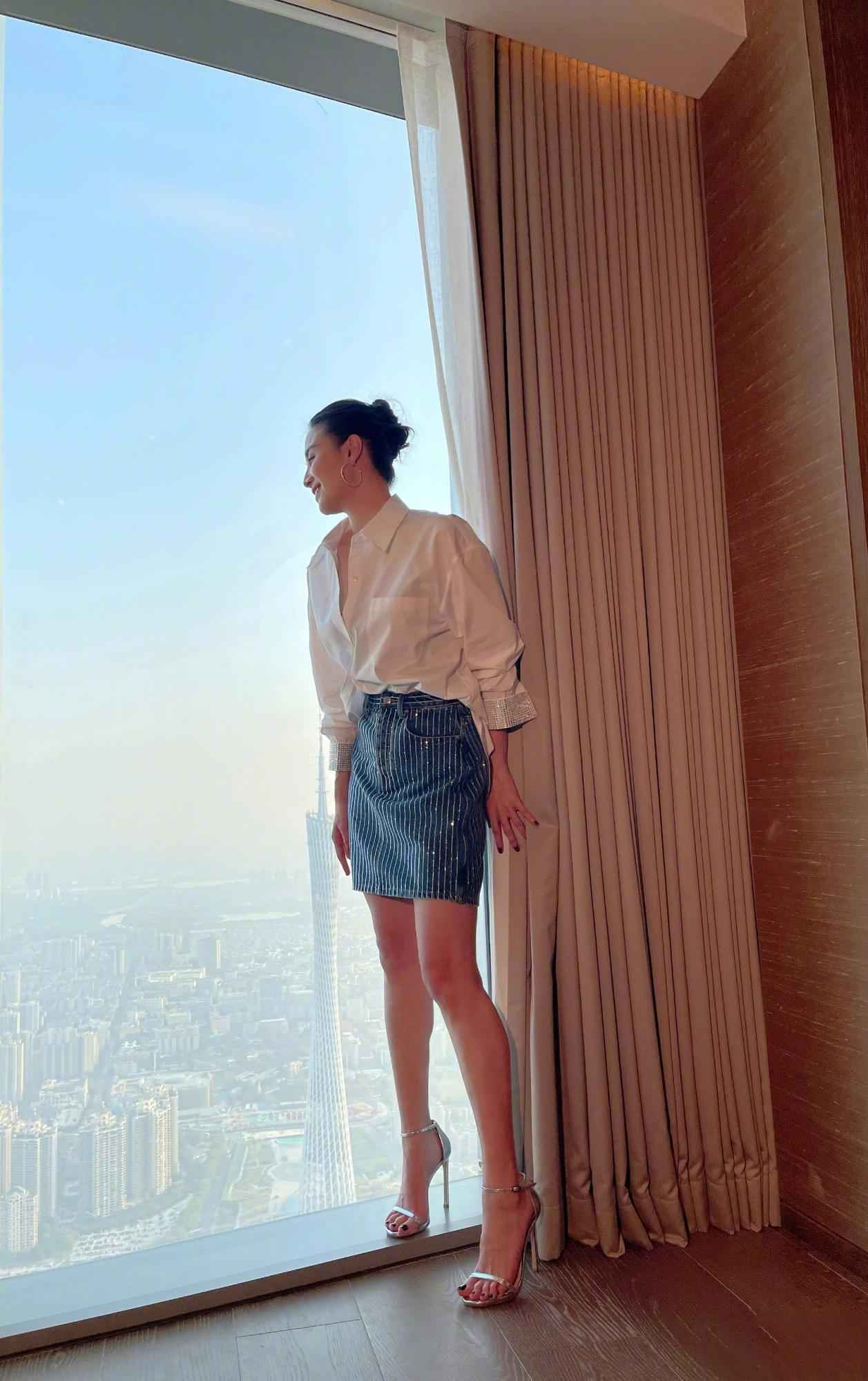 白衬衫配牛仔短裙更显腿长,视觉上全是腿,再戴对大耳环,帅气又利落,日常出街超吸睛。