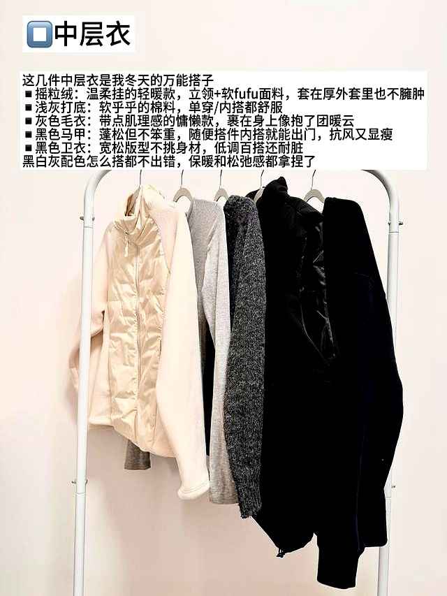 学会分层穿搭,冬天就能又暖又轻盈。内层首选德绒保暖衣或者薄绒打底,重点是要透气吸汗,避免闷出汗感冒。中层可以配基础色的毛衣或卫衣,比如黑、白、灰,保暖还不显胖。外层来件经典大衣或羽绒服,颜色挑驼色、深灰这种百搭色,上班约会都能穿。这样搭配,室内外温差大也不怕,温暖和风度都能兼顾。
