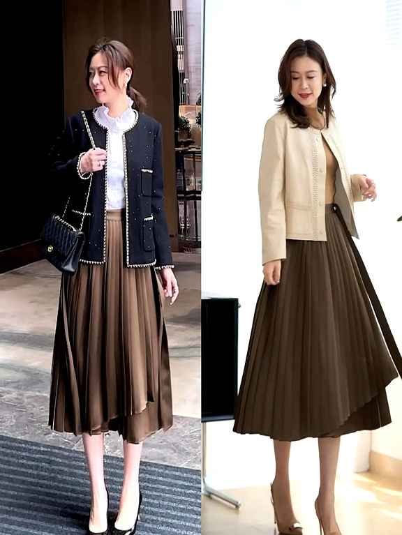 日常休闲穿两件针织套装加乐福鞋,温柔又舒服;商务场合用大衣配高领毛衣,专业又保暖。接送孙辈或家庭聚会,追求舒适自在,穿得有品就行。