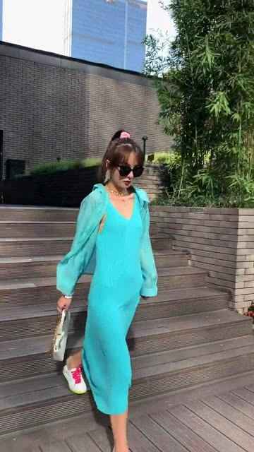试试“松而不垮”的廓形:别穿得紧绷绷,也千万别被 oversized 拖垮。选择剪裁优秀、肩线合身但略有空间的设计,比如微A字的连衣裙,既能藏住过于扁平的臀部,又能营造出一种随性而有型的氛围-7。