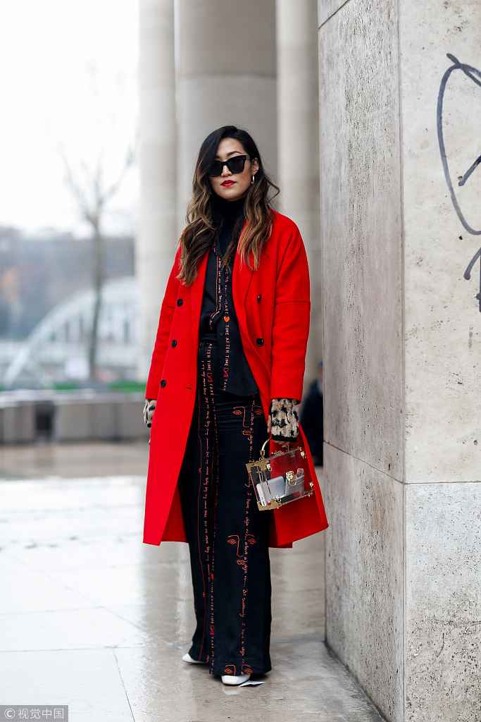 一件红色呢子大衣和元旦超配,红色代表热情,搭配黑色能增加沉稳感,瞬间提升气场。