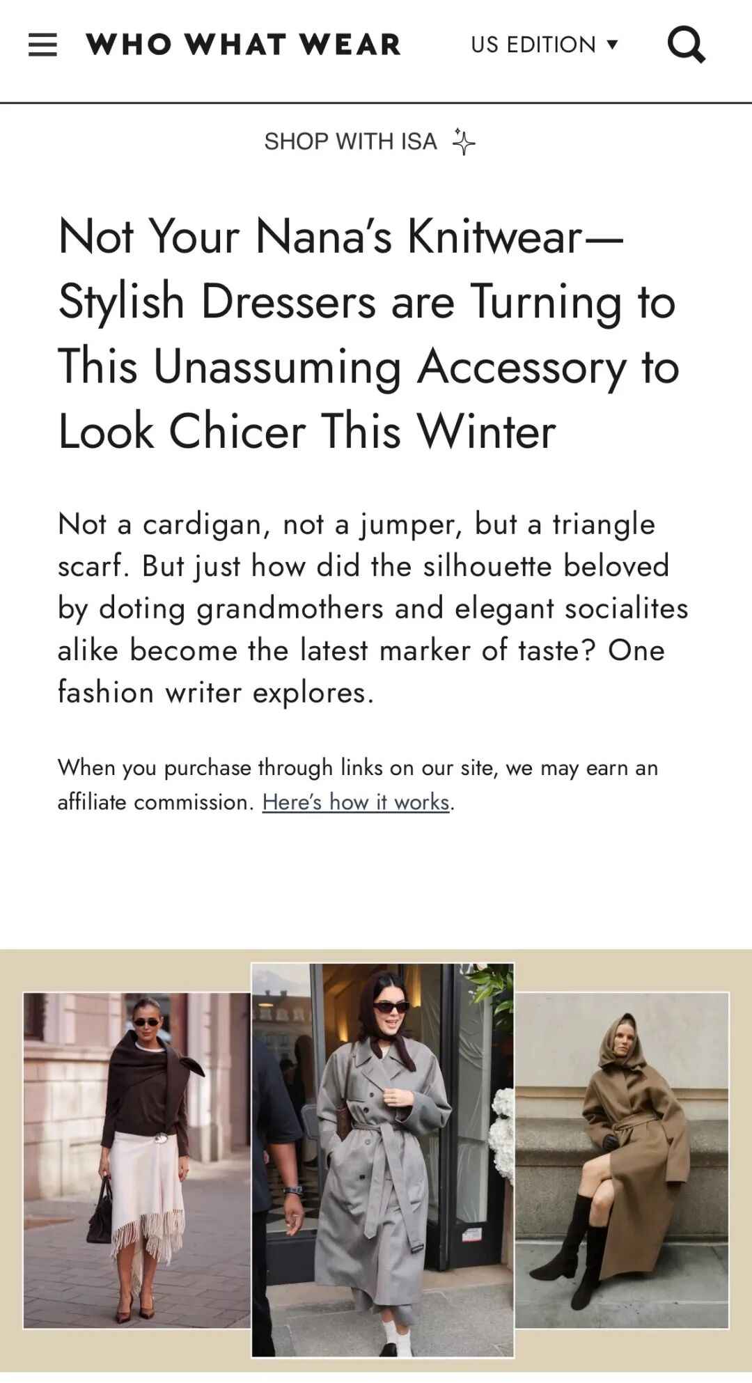 像Who What Wear和Cosmopolitan这些时尚网站,前段时间也专门写了三角巾的趋势,可见它有多受欢迎。▼