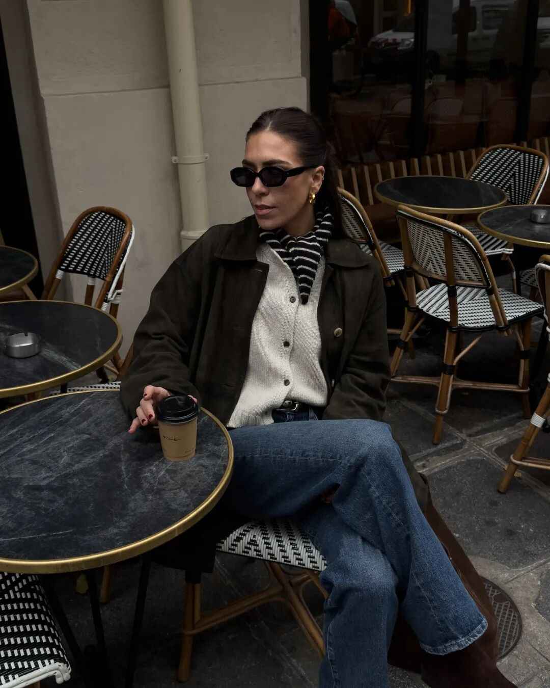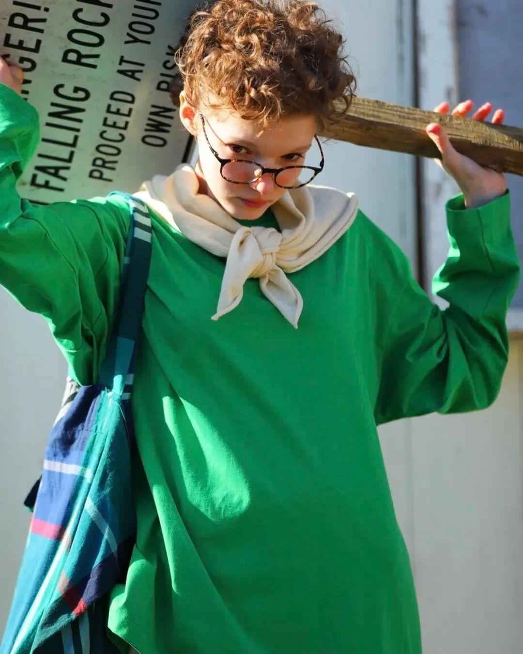 Hayley这身搭配可以直接抄作业,一身牛仔加麂皮棕色外套,再配绿色三角巾,配色高级又保暖。她这条来自苏格兰品牌TBCo,有多种颜色可选,参考价400+元。▼