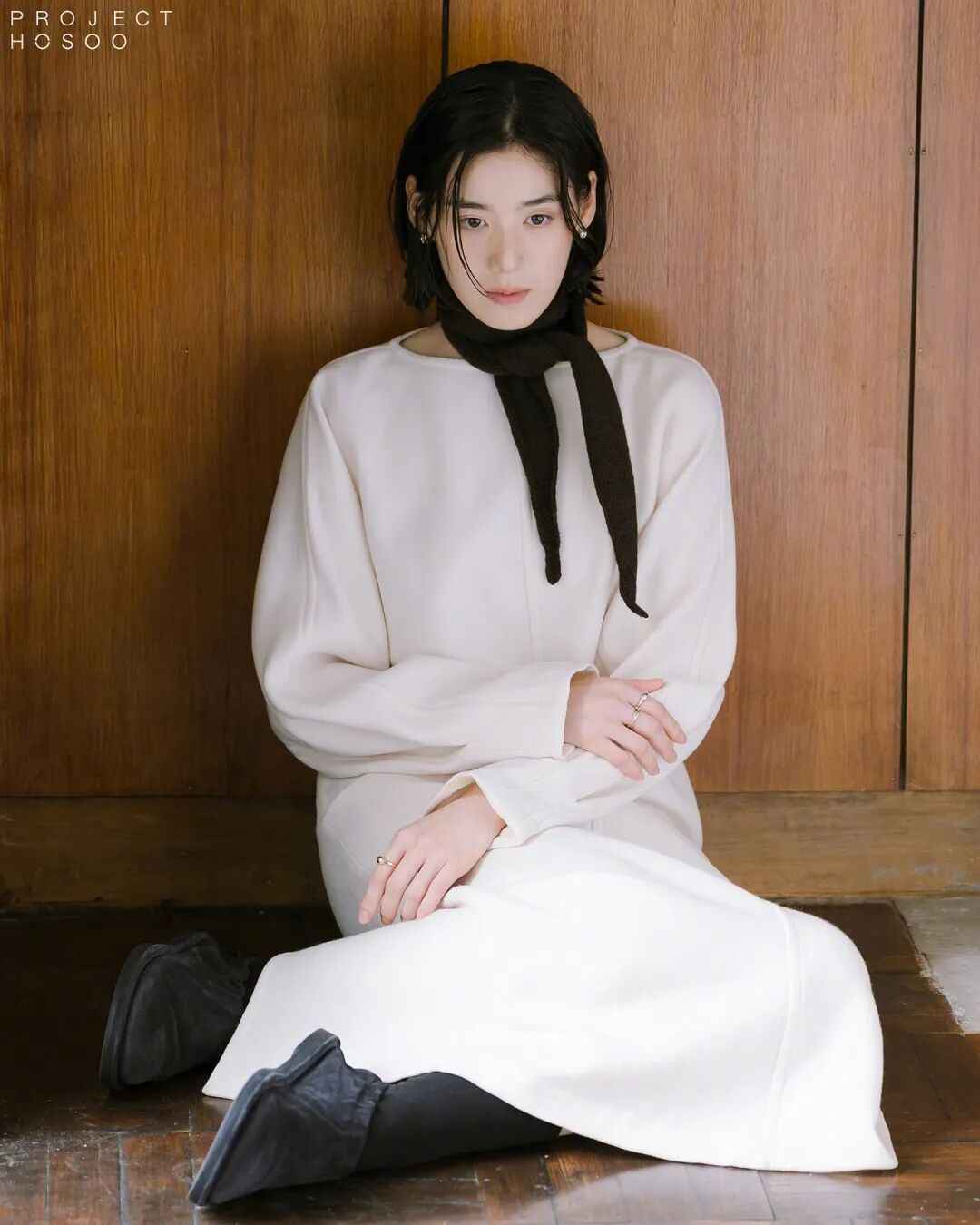 最简单的是在脖子上绕一圈打结,保暖又方便。郑恩彩给EYES Magazine拍的大片就这么戴,完全没技巧。▼