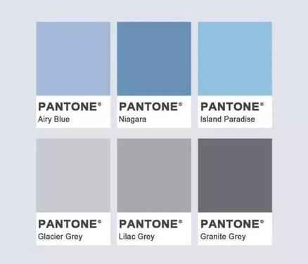 蓝色加灰色调和后是灰蓝色,这种颜色低调又高级,适合各种应用,从穿搭到设计都很受欢迎。