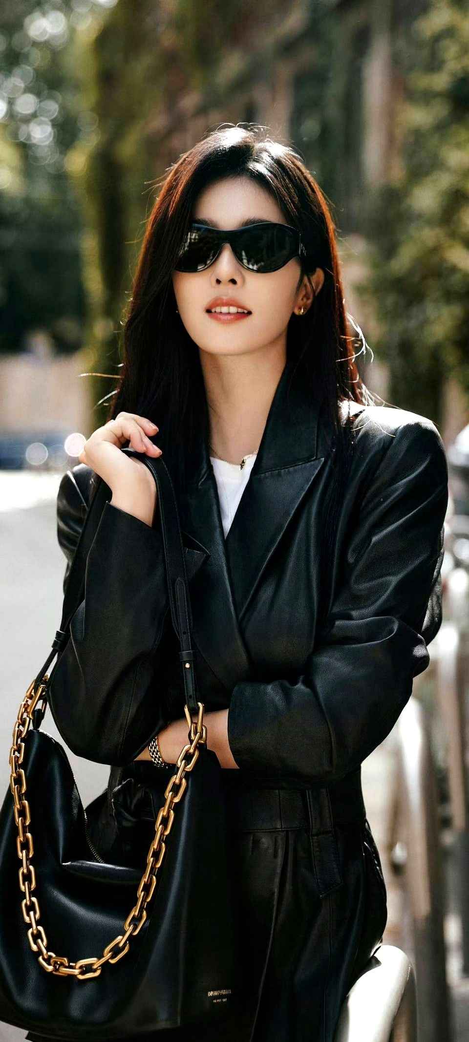 看到白鹿那套黑皮衣加墨镜的街拍,我立马心想:这不就是咱们中年姐妹最想要的帅气范儿吗?