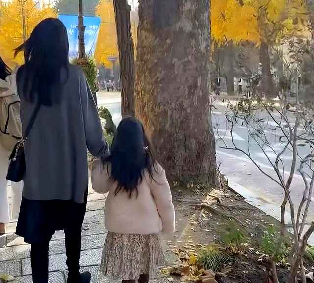 母女俩在街上散步时,不少路人认出了她们,有年轻女孩偷偷拍照,也有带孩子的妈妈投来会心一笑。崔智友没有躲闪,一路和女儿聊天,指点墙上的涂鸦和橱窗里的玩具,偶尔蹲下整理女儿的外套,动作熟练,一看就是经常照顾孩子的妈妈。