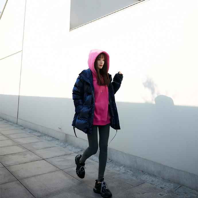 如果不喜欢黑色卫衣,也可以试试粉色或白色等亮色款。李小璐自家品牌就有款粉色连帽卫衣,颜色鲜亮又可爱。