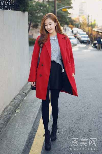 3. 网友“怕冷的北极熊”问: 我在北方,冬天零下十几度,光腿穿裙子扛不住啊!红色大衣除了配打底裤,还有没有更暖和又好看的裤装搭配?
