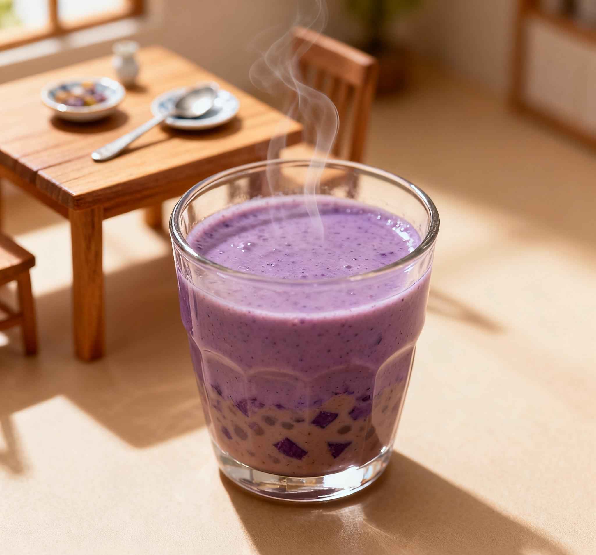 用破壁机将紫薯和黄豆打成淡紫色饮品