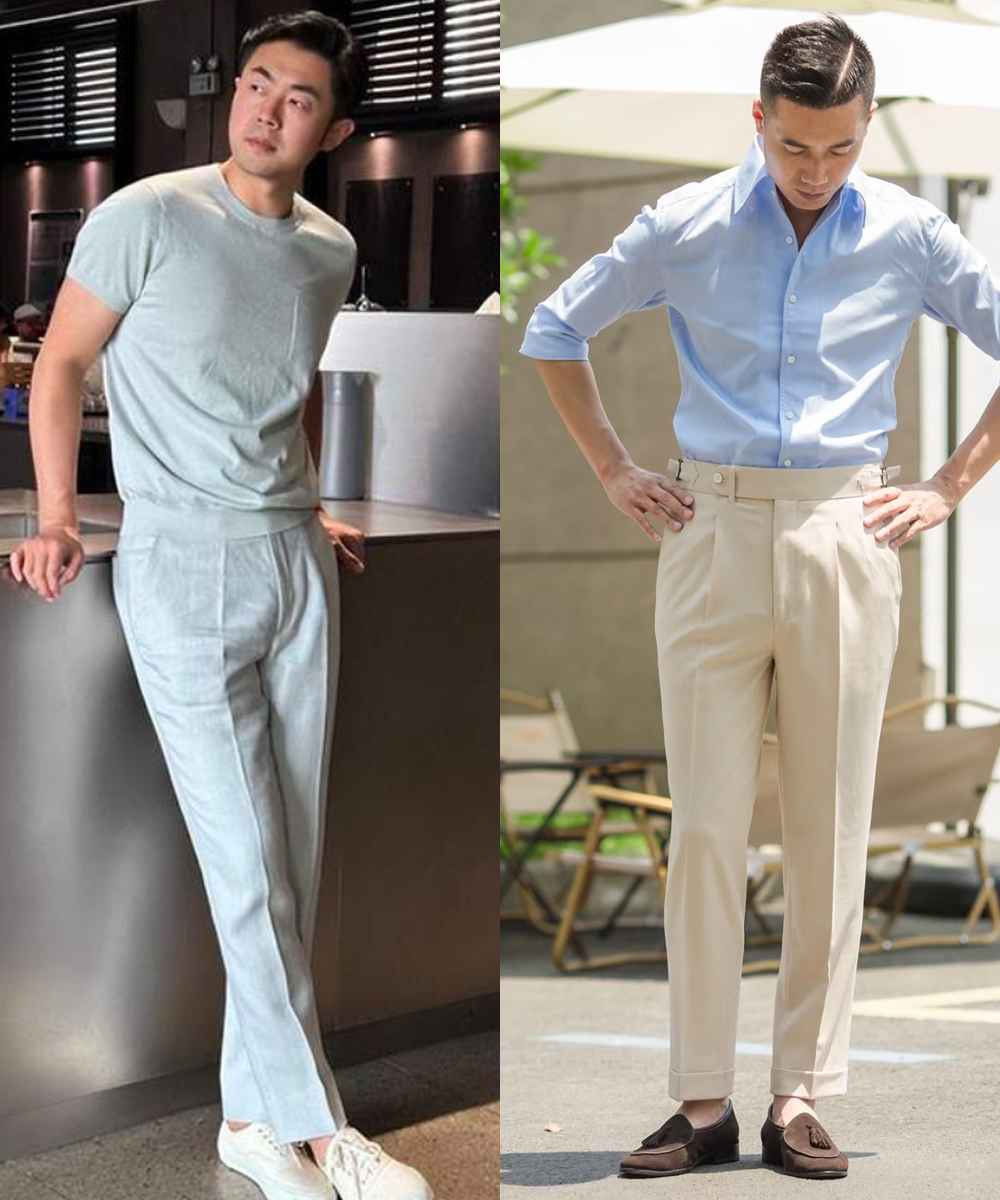 也可以直接不系皮带,把上衣塞进裤腰时固定好腰线,打造三七分比例,看起来精神十足。不过这种方式适合腰腹没有赘肉的男性。
