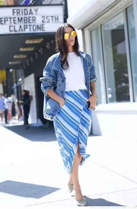 牛仔衣最妙的一招,还在于它神奇的“平衡术”。当你穿一条甜美甚至有点腻人的印花连衣裙时,担心太过“公主病”?一件中性帅气的牛仔外套往肩上一披,甜和酷立刻得到完美平衡,时尚感拉满-1。同理,当你觉得身上的小礼裙过于正式隆重,一件随性的短款牛仔外套就能轻松化解“刻意打扮”的感觉,让造型变得举重若轻-6。你看,牛仔衣还特别适合那些想尝试多元风格,又怕过犹不及的搭配新手,它就像一位万能的和事佬,能轻松调和各种矛盾元素。