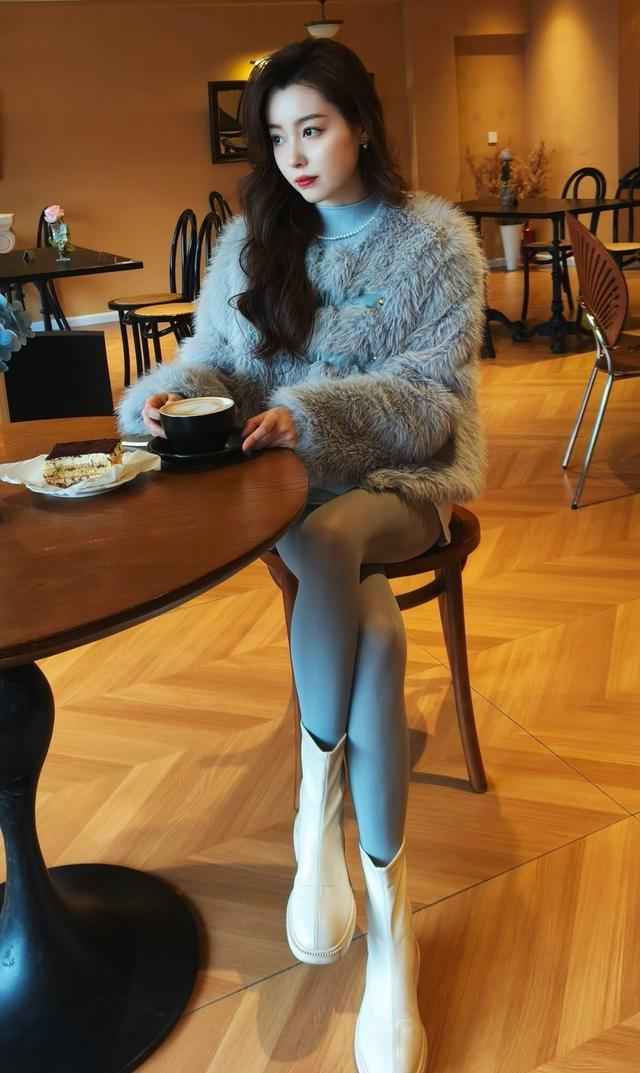 高级灰名媛风穿搭秘籍:灰色皮草+打底裤,时尚又养眼