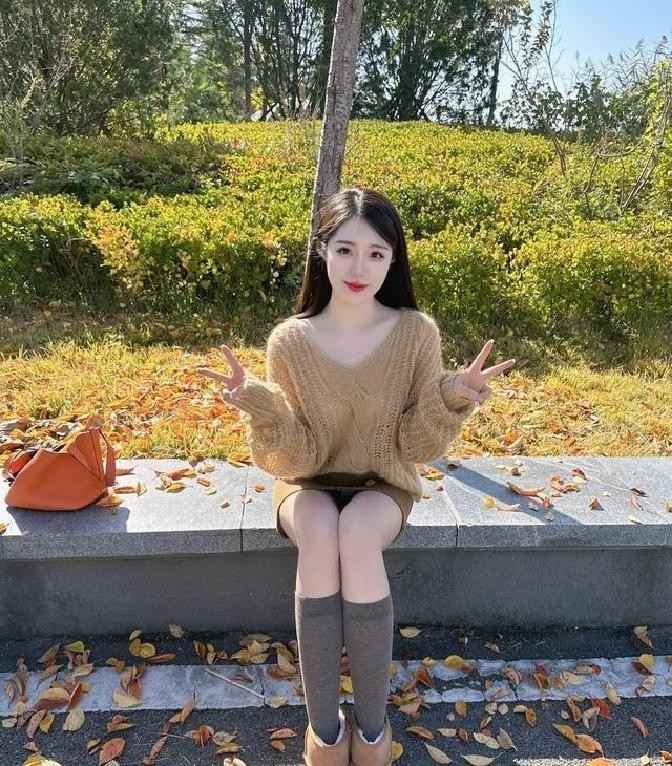 记得前阵子,我被一张朋友圈照片深深吸引。照片里,一位小姐姐穿着大地色系的搭配,低调中透出温柔,美得让人移不开眼。她上身是一件燕麦色V领针织衫,袖子是宽松的蝙蝠袖设计,慵懒又精致,那种米黄带点奶茶的色调,柔和得恰到好处。下身配了一条咖啡色短裙,裙子的深色与上衣的浅色形成鲜明层次,整体看起来温暖又高级。脚上那双浅咖色麂皮绒长靴,完美呼应了“上浅中深下浅”的搭配法则,整个人就像一幅秋日油画,柔和却不单调。