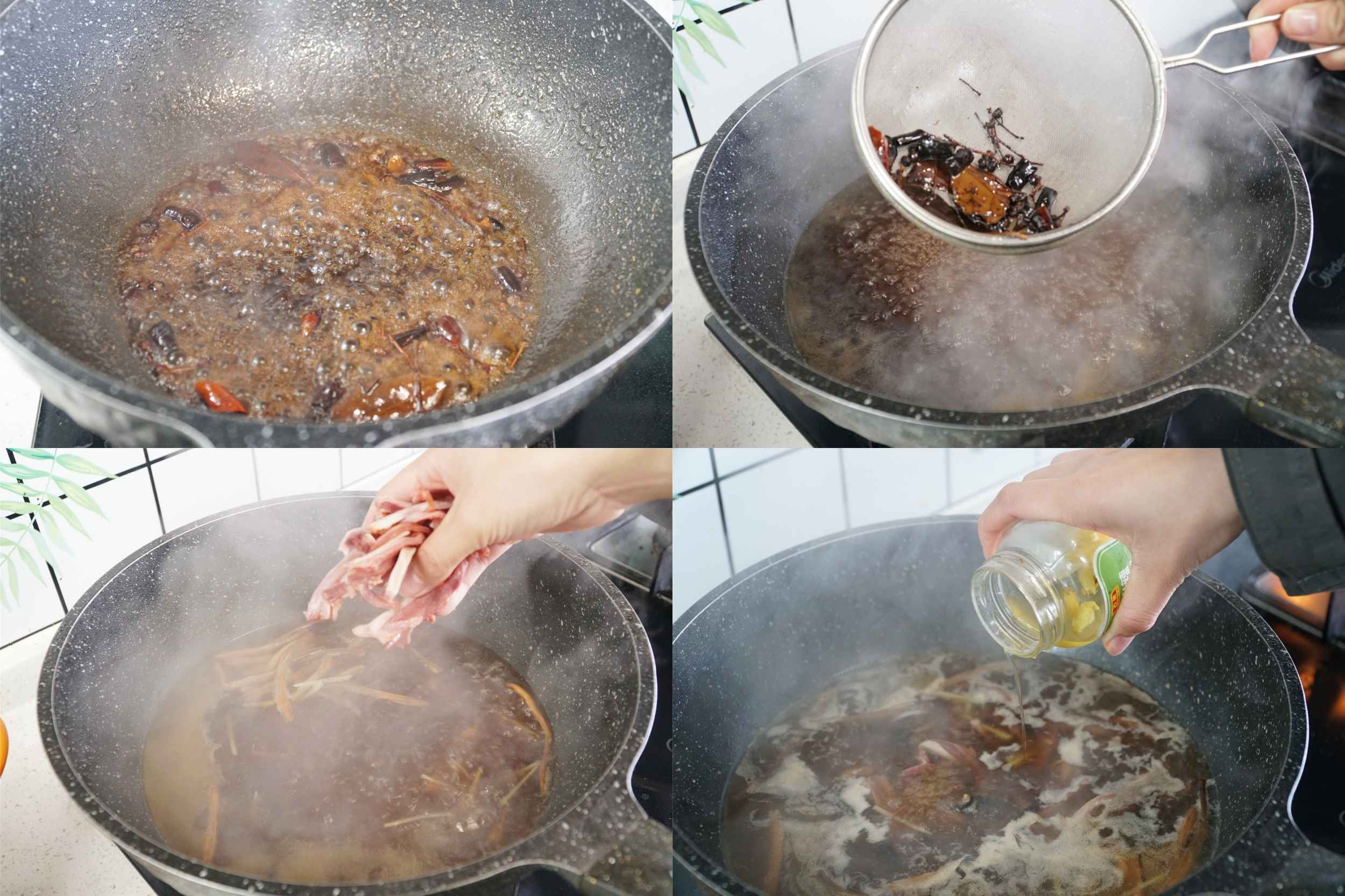 6、倒回炒锅,捡出香料,大火收汁到黏稠就好了。
