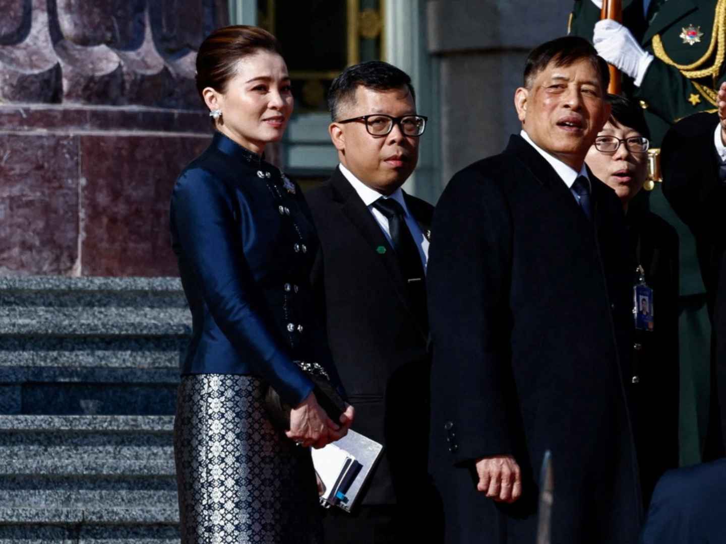 苏提达王后可不是花瓶,人家手握五十多个博士学位,能力超群,绝对是泰王的左膀右臂。这次访华,她做足了功课,佩戴的珠宝闪闪发光,仪态万方,穿搭更是时尚又高级。整个人往那一站,就像一朵盛开的富贵花,美得让人移不开眼,直接成为全场焦点!