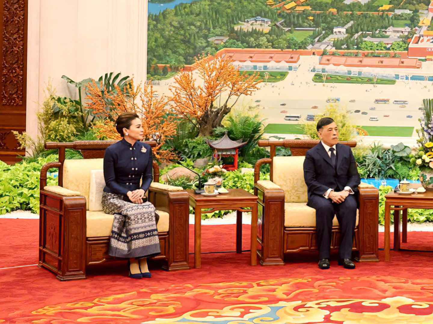这次泰王访华,苏提达在晚宴上大放异彩,成为最耀眼的女眷。她的气质和穿搭秒杀全场,旁边的人都黯然失色。