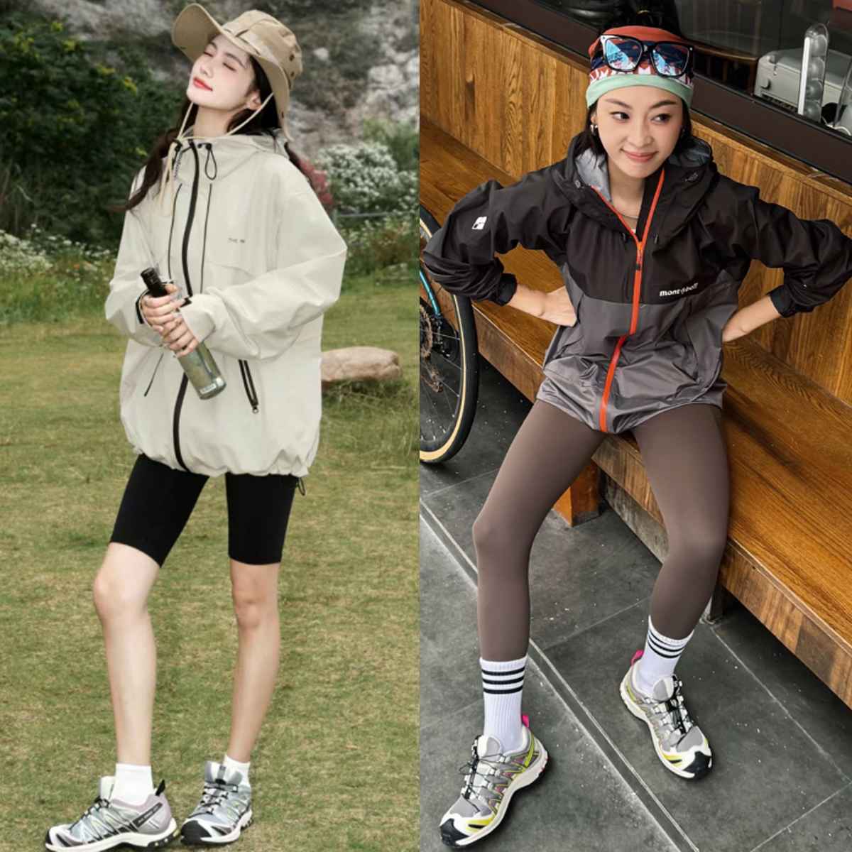 不知道从啥时候起,城市通勤还是户外活动,都悄悄流行起这种搭配:用帅气十足的冲锋衣、修身显瘦的瑜伽裤,再加一双功能与潮流兼顾的萨洛蒙运动鞋。别看是混搭,但它完美打破了场合限制,让你随时随地穿出自由感,真正实现“全天候”时尚。