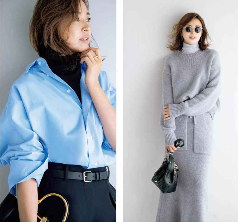 落实到衣服选色,特别是靠近脸部的上衣,大面积的外套等,一定要选适合自己肤色的款式,才能减少失误。