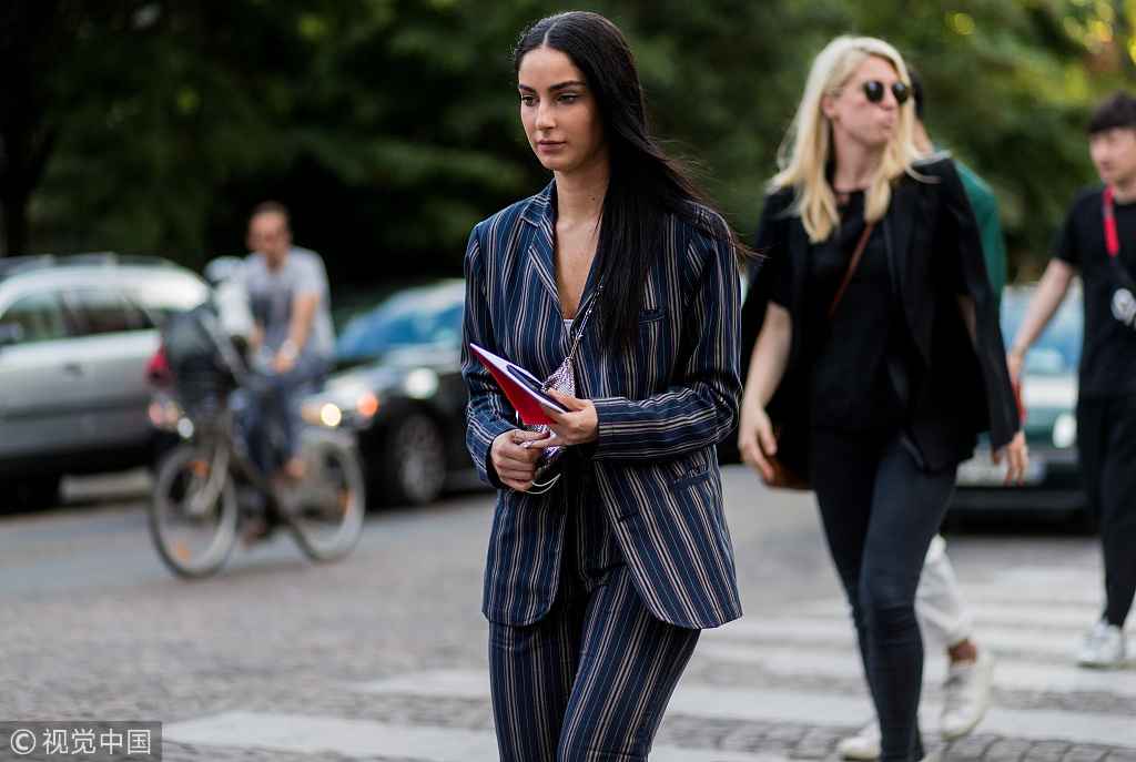 竖条纹配深色西装也很出彩,硬朗的版型能平衡图案的跳跃感,同时修饰肩线,增添一丝俏皮。无论是上班还是聚会,都能驾驭。加一条细腰带突出腰身,效果会更棒。