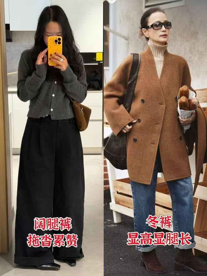 选择大小适中的衣服,能更好修饰腿型就行,比如右边这条牛仔九分冬裤,穿上后显高又显腿长。