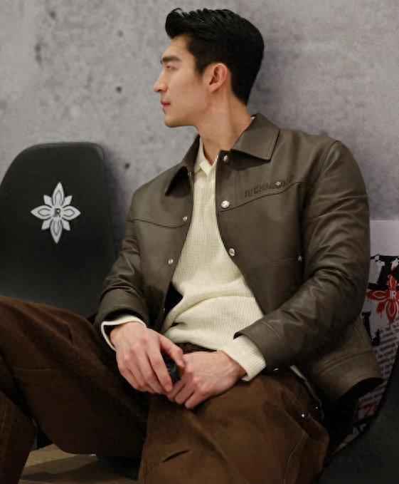 夹克下摆刚好盖过皮带,长度在屁股中间,视觉上拉高腰线3厘米,肚子瞬间隐形5厘米。