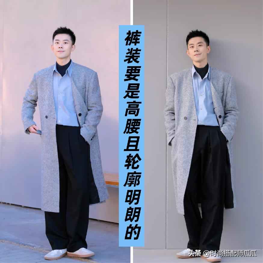 外套建议选直筒或烟管版型,避免太宽松。这样和西装裤搭配起来,整体线条流畅,不会拖沓,特别适合微胖男生藏肉显瘦。