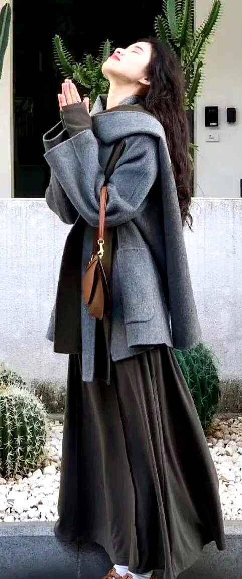 黑灰系这么受欢迎,主要还是因为太好搭配了。早上随手抓两件就能出门,不用担心颜色冲突。黑色显瘦效果一流,能让身形更修长,灰色则比白色耐脏,又比黑色多一丝活力。看似基础的组合,却暗藏高级感。现在很多人喜欢用材质碰撞来打破沉闷,比如厚呢大衣配颗粒感阔腿裤,走路都带风。叠穿技巧也很流行,灰色大衣里搭一件亮色针织衫,脱掉外套后内搭的层次感立马显现。