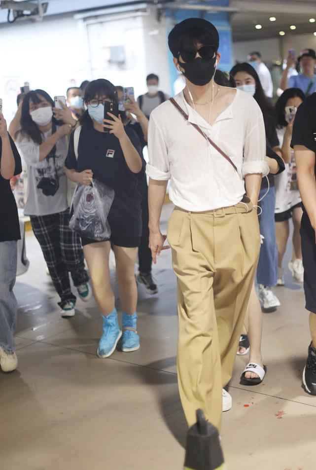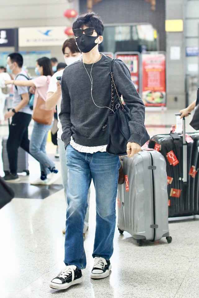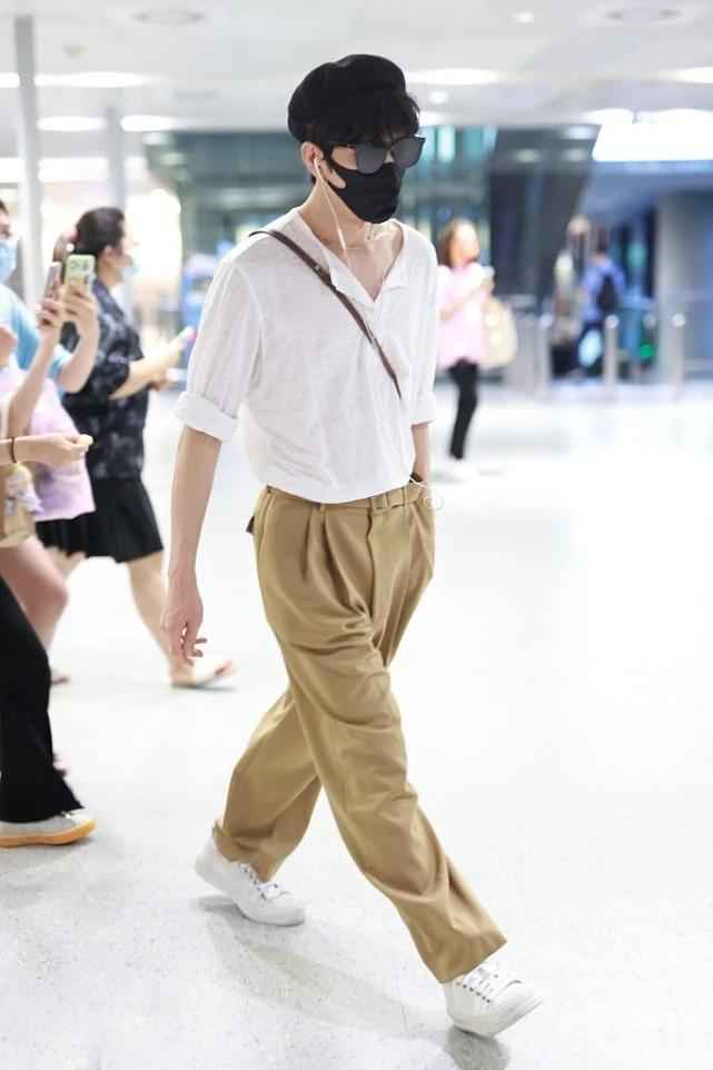选鞋子时,井柏然也呼应了整体休闲风,用青春感的小白鞋来增添个性。帆布鞋的清新配色和轻盈上衣很配,让造型更时髦。不过这种穿搭对身材和气质要求高,没把握最好不要学。