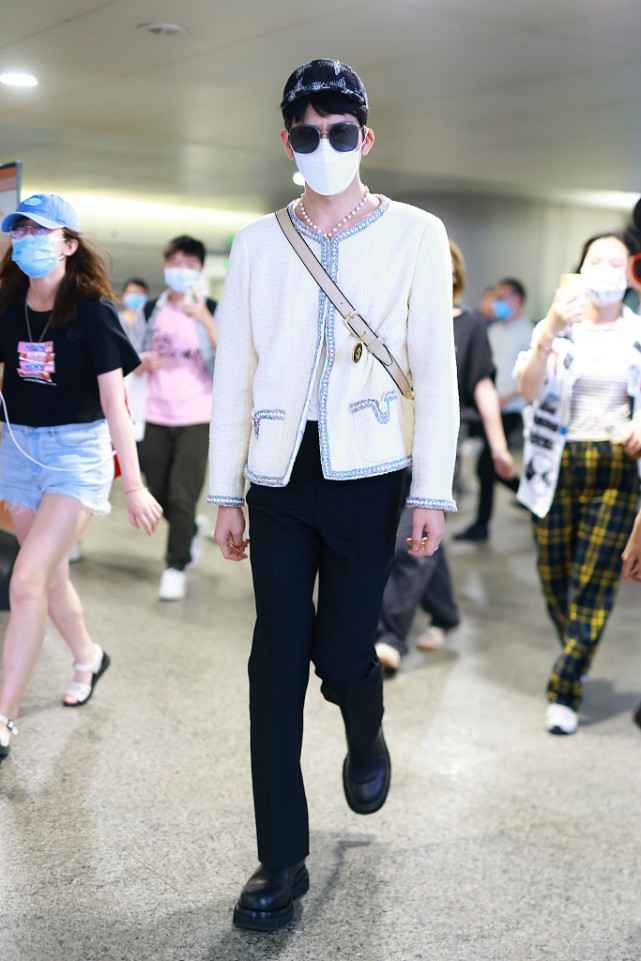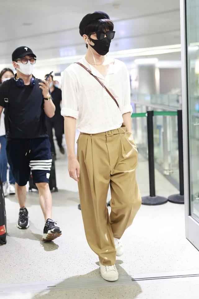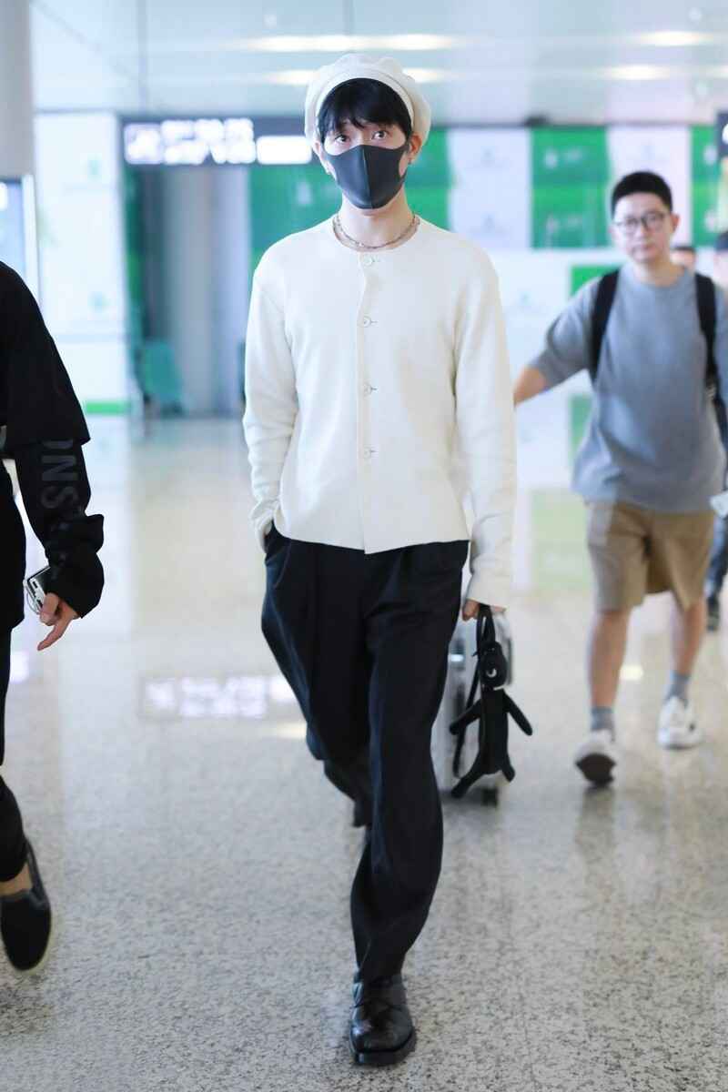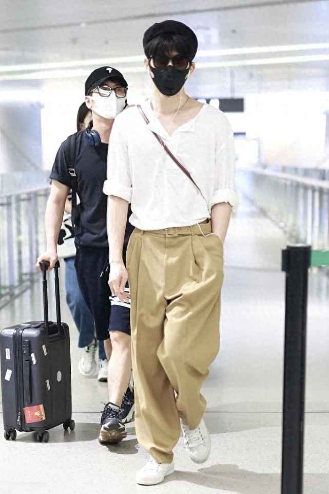 高个子好气质让他能驾驭混搭风,黑色古风外套配白色阔腿裤,飘逸又自然,而帆布鞋和贝雷帽加入青春元素,避免老气,更显活力。