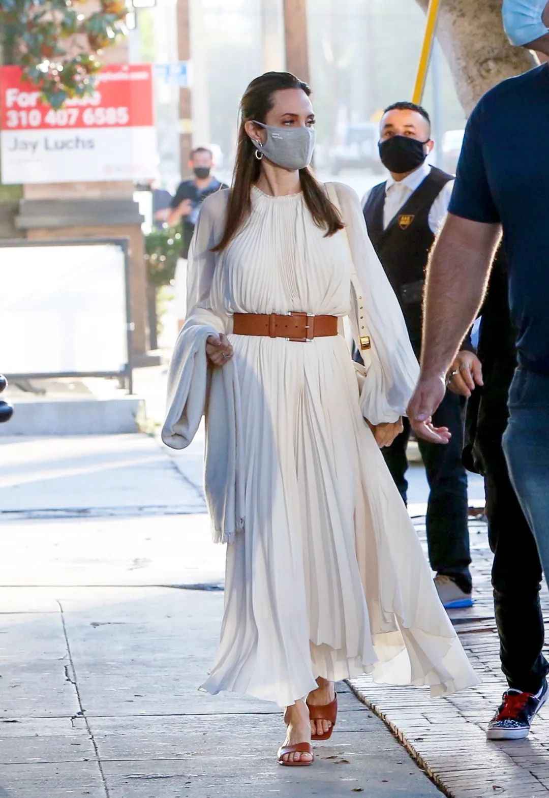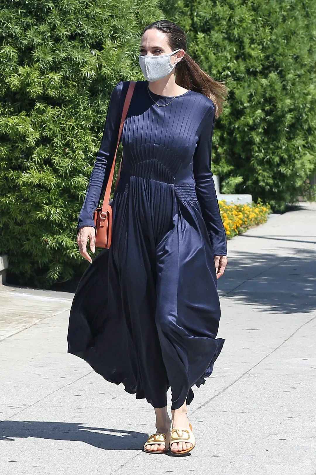 朱莉私服里连衣裙出镜率超高,各种款式都有。共同点是长度偏长,大多到脚踝,有的甚至拖地。裙子越长气场越足,当然得能驾驭才行。▼