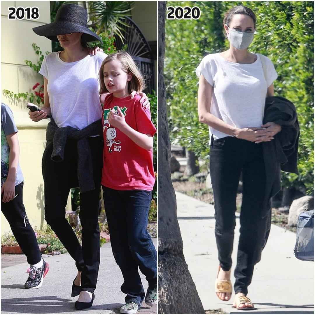 今年朱莉甚至穿白T配黑裤登上了英国版《VOGUE》杂志大片。▼