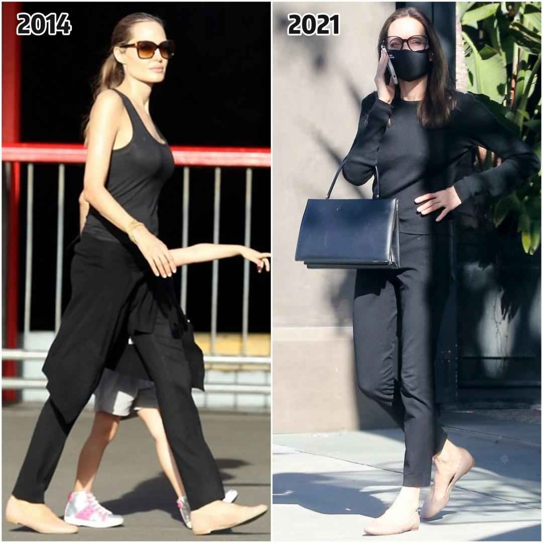 上个月街拍里,朱莉脚上那双鞋很眼熟,一查才发现这双Chloe裸色平底鞋至少陪她7年了!▼