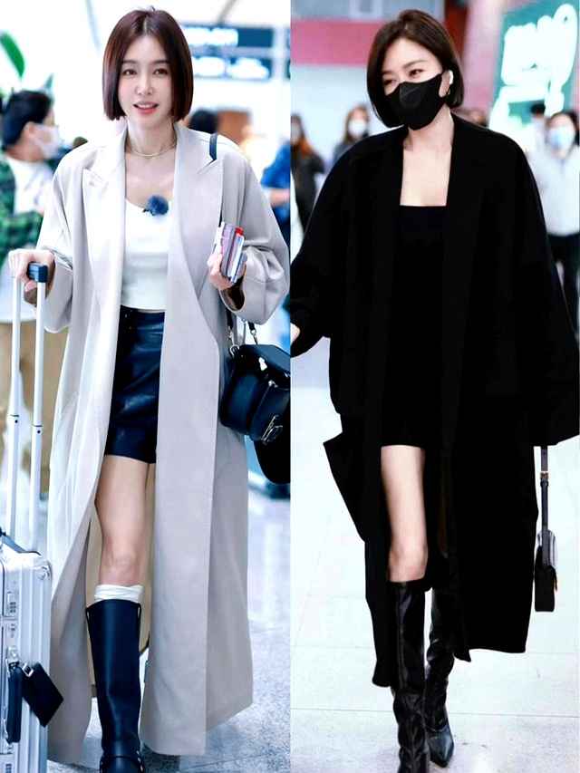 直到看到秦岚那套大衣搭配短裙和长筒靴的造型,我才发现,原来小个子和我们普通身材的人,也能穿出利落、显高又不老气的样子。