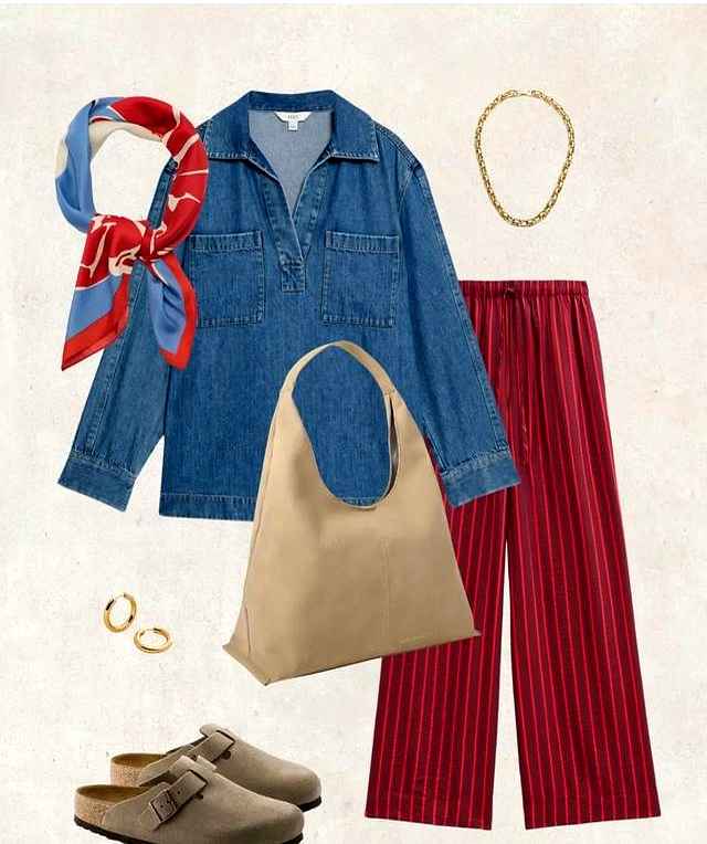 脖子上加条几何图案的小丝巾,完美。