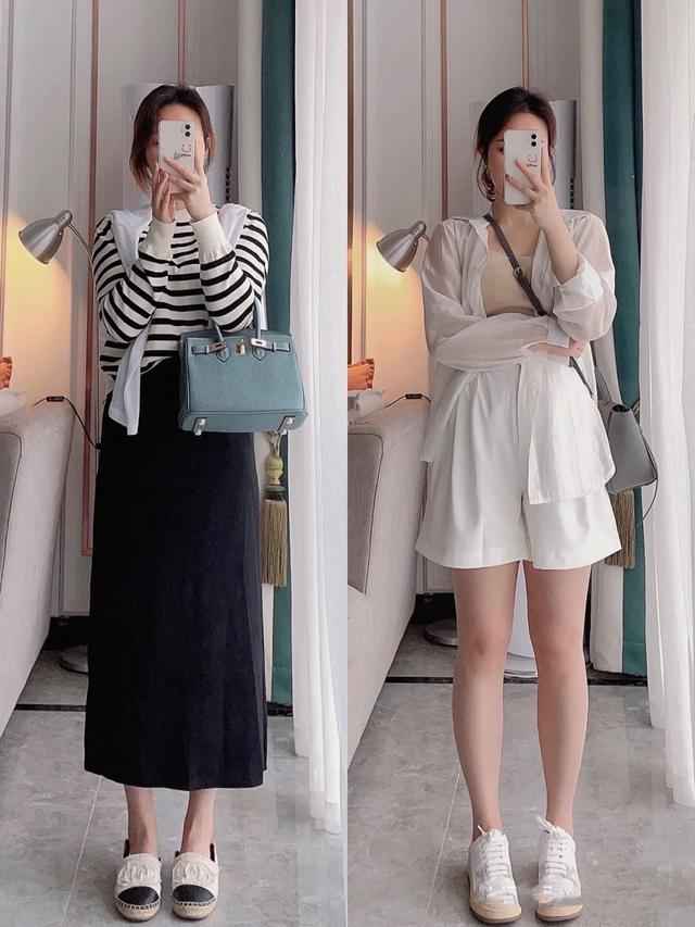 高腰款是救命神器,外套不明显可以加腰带强调腰线。上衣选修身或插肩袖显秀气,下装挑直筒裤、阔腿裤等直线剪裁,拉长腿部线条。