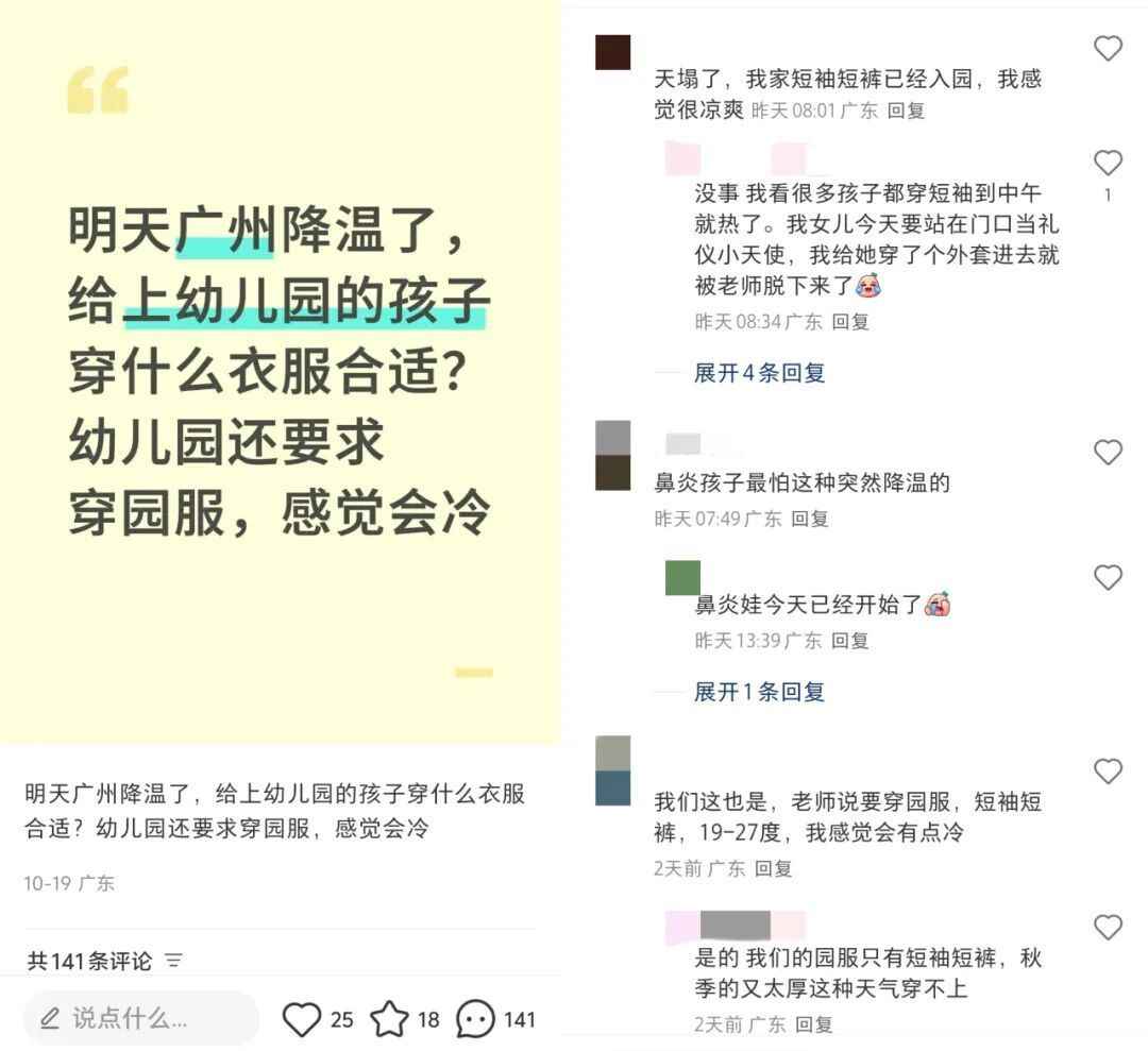 比起中小学生家长,幼儿园的家长们更拿不准该怎么给孩子穿衣。有家长提到,幼儿园老师会提醒家长给孩子准备一件薄外套,老师会根据天气情况随时帮孩子增减衣物。