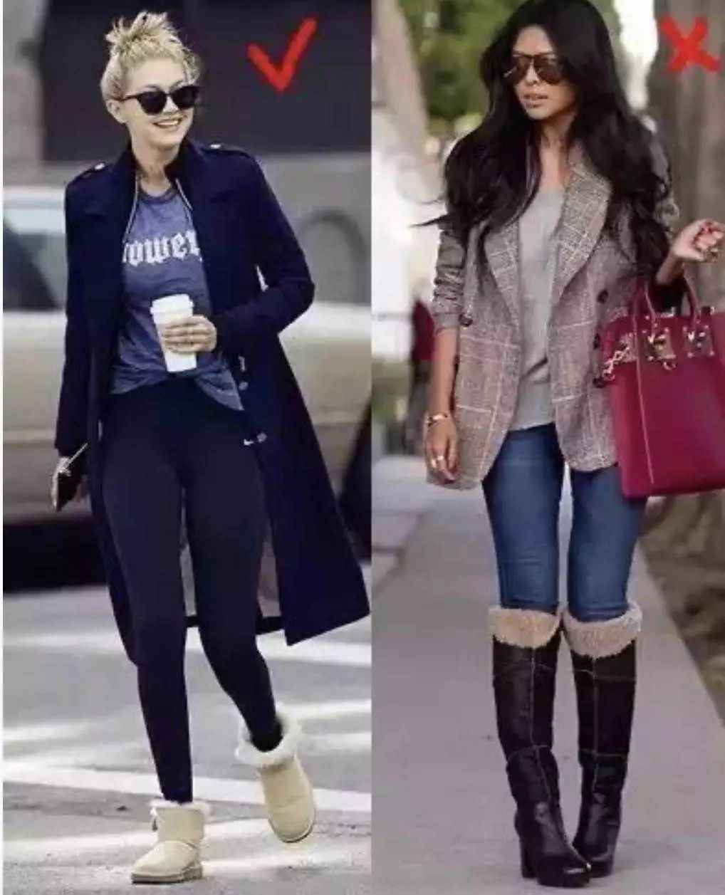 UGG首选搭配小脚裤、打底裤,啥紧身穿啥