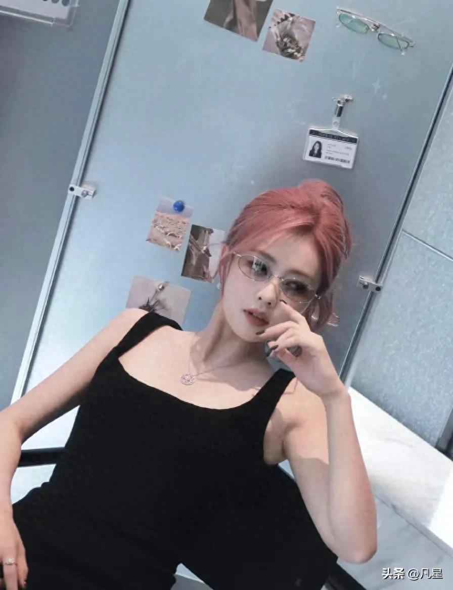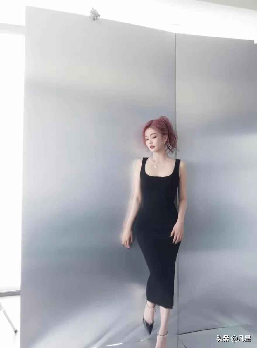 粉色头发穿衣搭配图片 白鹿,粉色头发搭配黑色紧身裙,又酷又辣