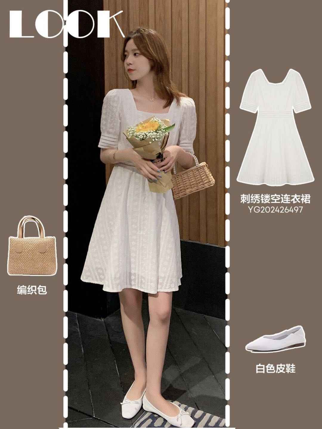 刺绣镂空连衣裙绝对是旅行拍照的神器!小方领搭配镂空花纹,穿上立马仙气飘飘,随便一拍都是大片质感。