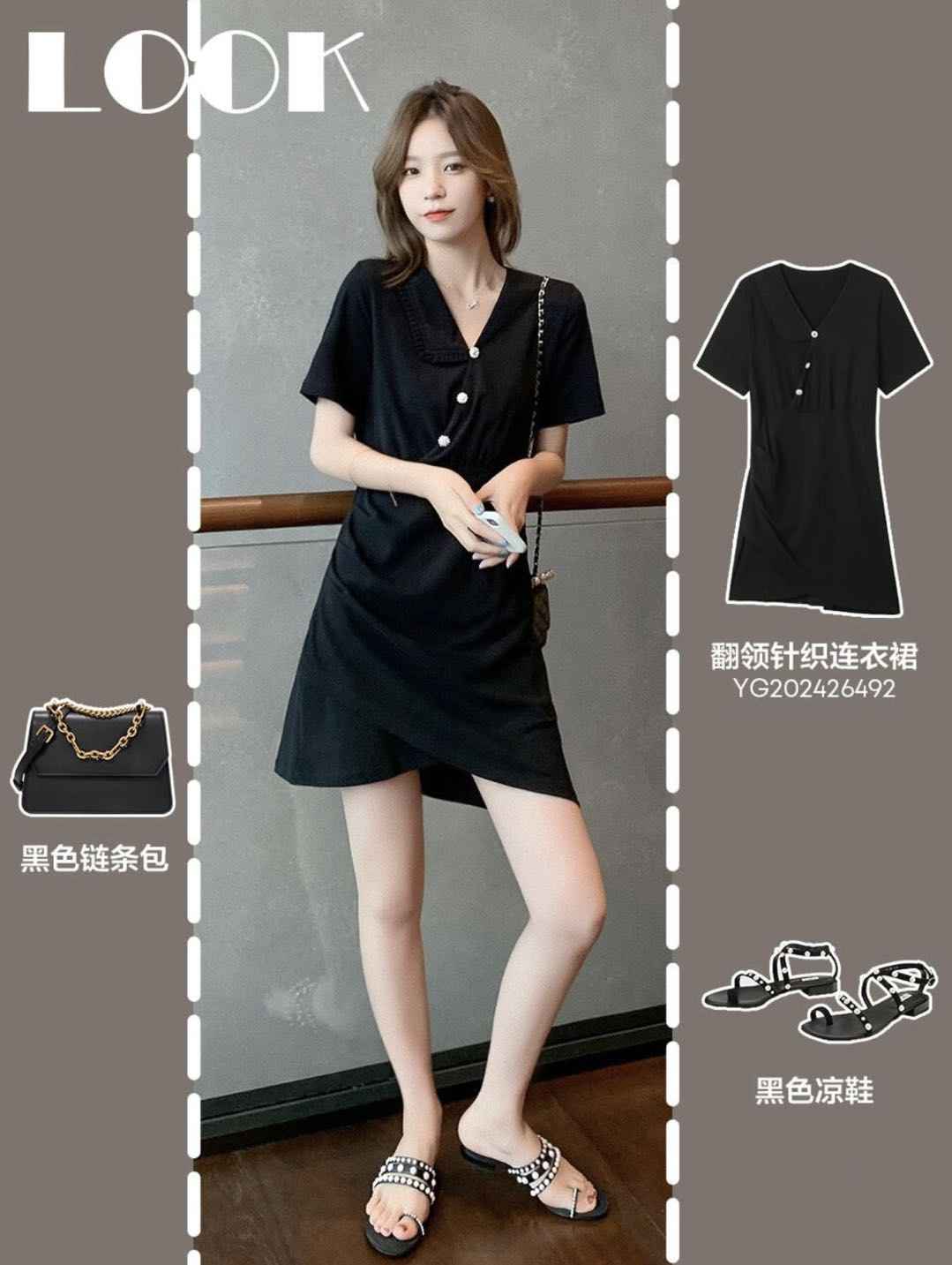 翻领针织小黑裙优雅又显瘦,室内拍照首选!选个光线好的地方,气质直接提升好几个度。