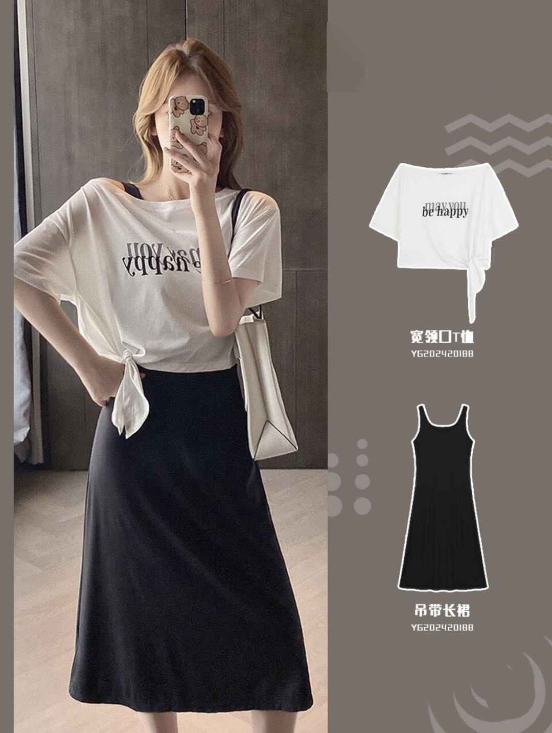 T恤加吊带裙的叠穿法,优雅又减龄!修身T恤打底,外搭吊带裙,层次感十足,谁穿谁年轻。