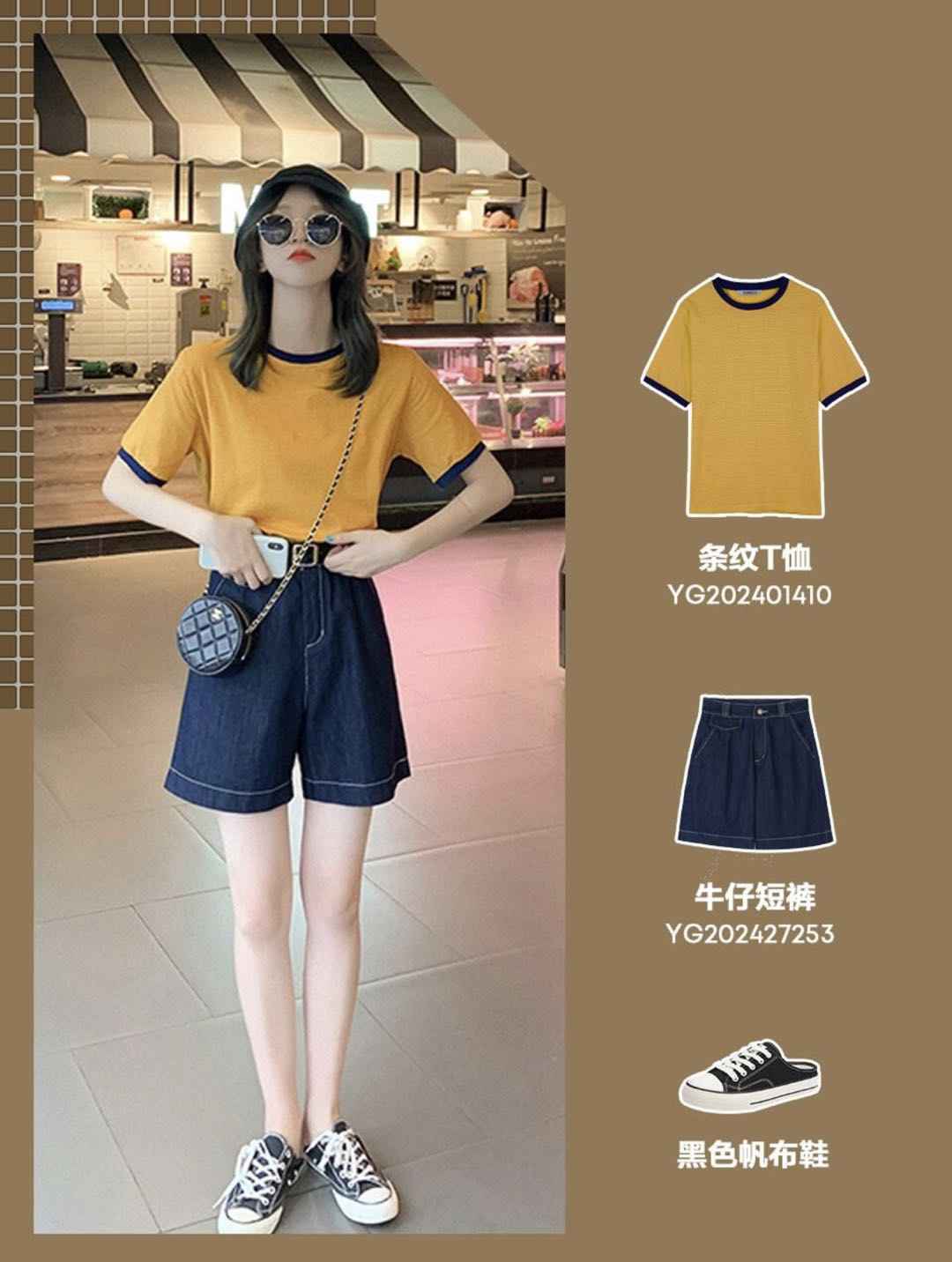 亮橙色上衣出行超抢眼!小个子配短裤视觉增高5cm,清爽又显白。