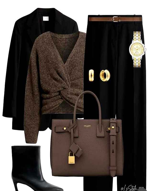 黑西装人人有,但穿出彩的没几个。今年别再买基础款了!挑有设计感的:比如腰部打结、下摆不对称的款式,小小改动就能打破沉闷。搭配时抛弃白衬衫,用黑色内搭加金色夸张耳环点睛就行。记住“少即是多”:衣服有设计感时,配饰要精简。