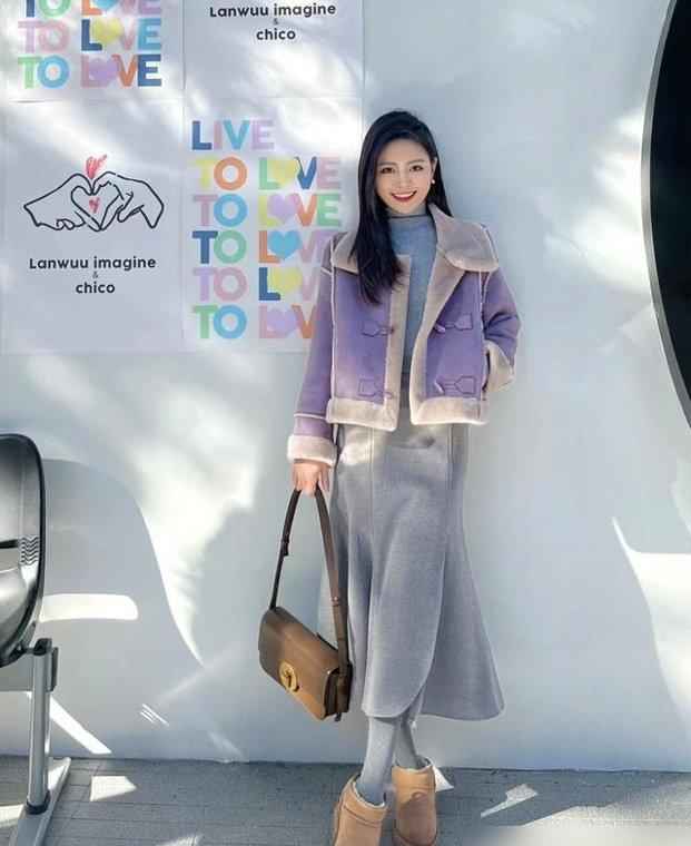 最近流行中筒靴配裙子,露一截脚踝,层次感立马有,还显腿长。