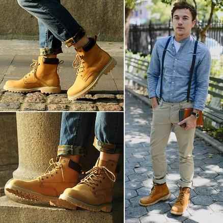 工装靴配束脚裤或牛仔裤,破洞款更酷,上身加工装外套,整体硬朗帅气。穿起来舒服,日常实用...