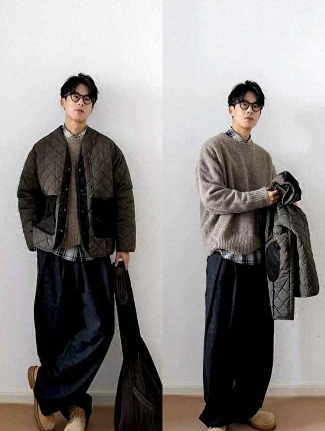 军绿色听起来厚重,但今年的灰调橄榄绿更显轻盈。试试灰绿色羽绒服配浅灰卫衣和深灰直筒裤,整体造型像“城市探险家”,低调却不失个性。这种搭配适合通勤,黑白灰基础色保证不出错,让你轻松穿出文艺感。