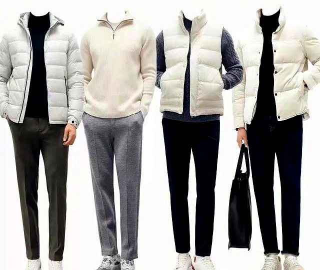 别以为冬天只能穿深色!米白色让你看起来干净又温暖,比纯白更柔和,特别适合亚洲肤色。关键是选修身版型,用深色配饰如包包或围巾点缀,层次感立马出来。这样穿既能显气质,又不会像“卡通人物”,轻松打造“暖男酷哥”风。